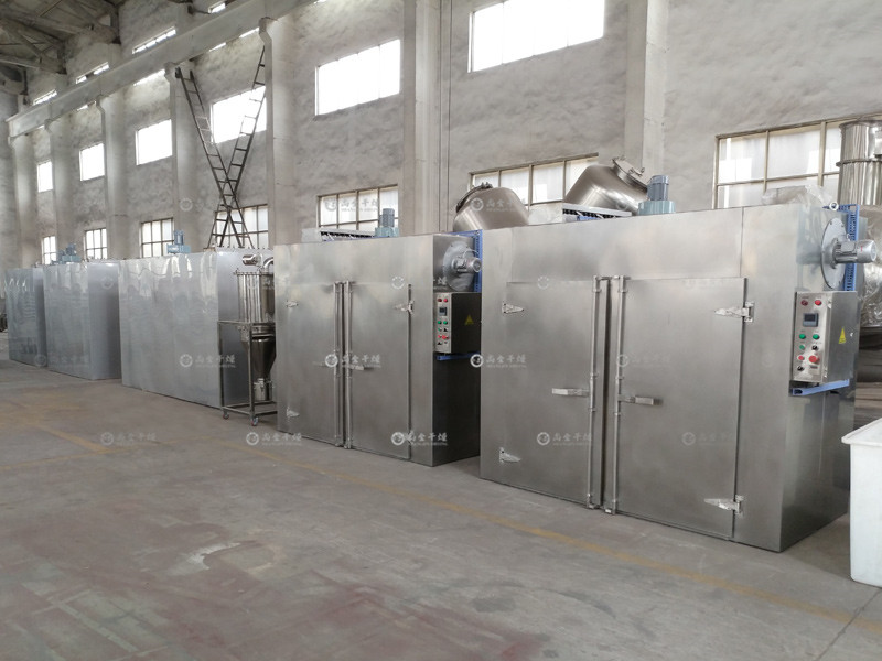型號規(guī)格 | 每次干燥量(kg) | 風機功率(kw) | 耗用蒸氣(kg/h) | 烘車(set) | 烘盤(只) | 寬×深×高(mm) | 上下溫度(℃) |