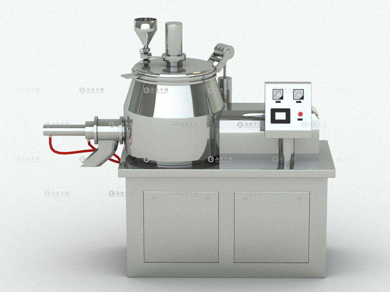 粉體物料與粘合劑在圓筒形容器中由底部混合漿充分混合成濕潤(rùn)軟材,然后由側(cè)置的高速粉碎槳切割成均勻的濕顆粒。