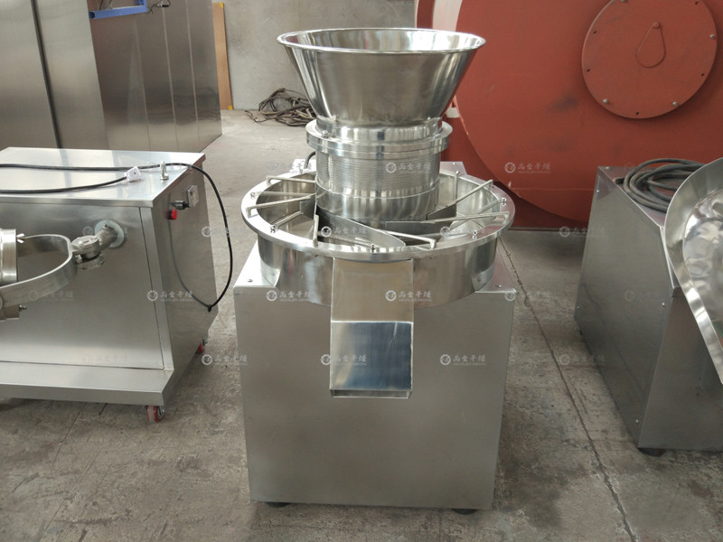 本機(jī)用于制藥、食品、沖劑、化工、固體飲料等行業(yè),將攪拌好的物料制成所需顆粒,特別適用對(duì)粘性較高的物料。