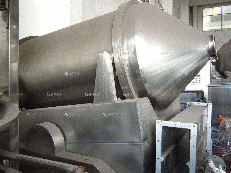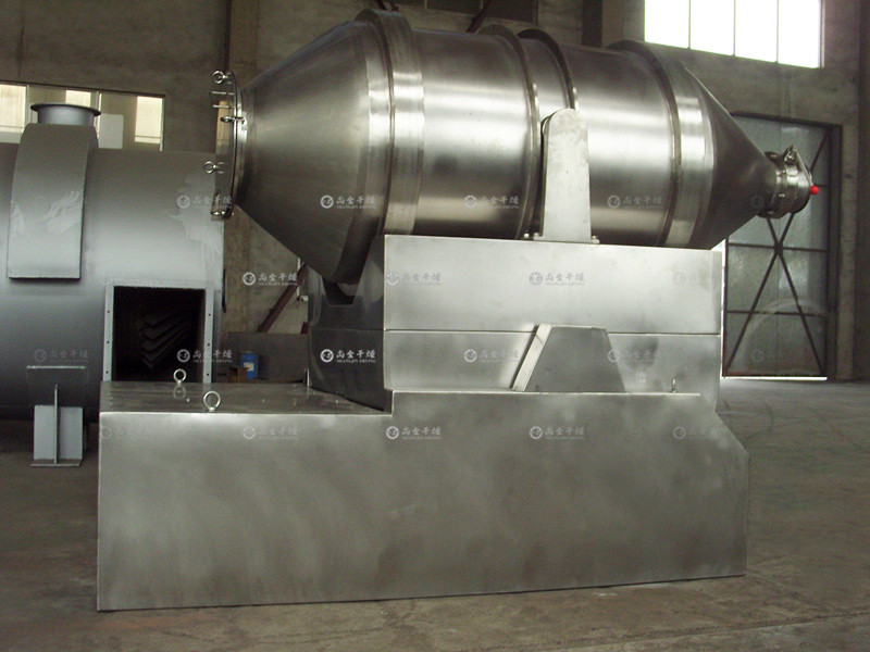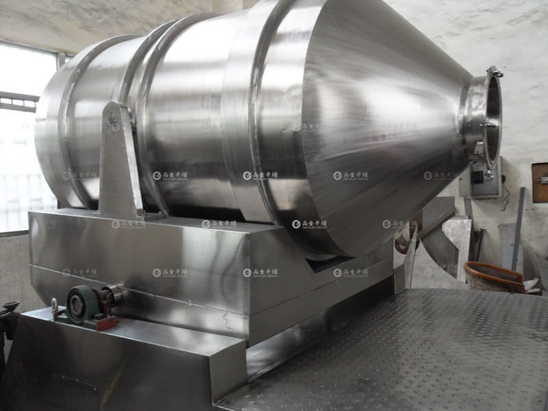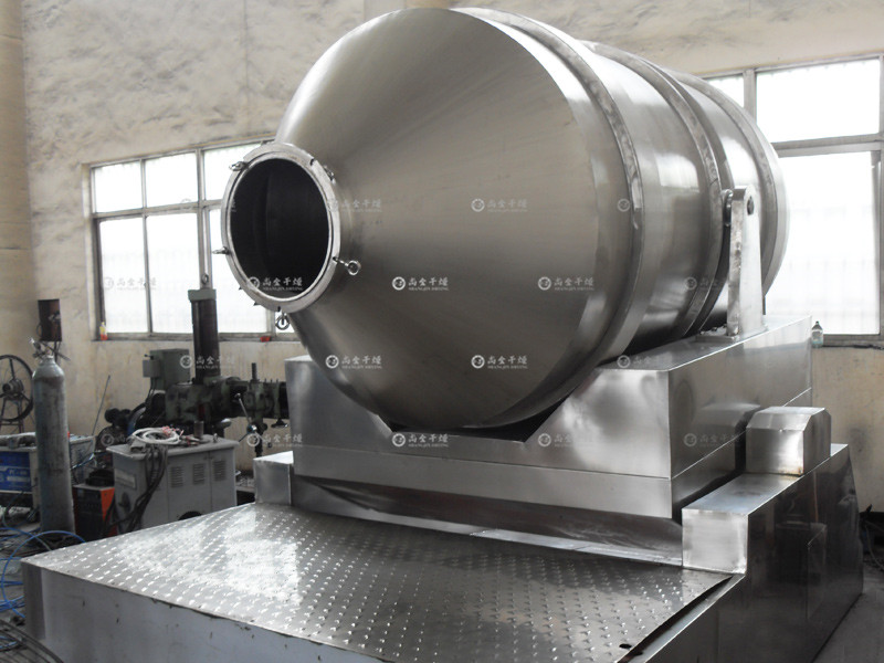 EYH二維混料機(jī)的轉(zhuǎn)筒可同時(shí)進(jìn)行二個(gè)運(yùn)動(dòng),一個(gè)為轉(zhuǎn)筒的轉(zhuǎn)動(dòng),另一個(gè)為轉(zhuǎn)筒隨擺動(dòng)架的擺動(dòng)。被混合物料在轉(zhuǎn)筒內(nèi)隨轉(zhuǎn)筒轉(zhuǎn)動(dòng)、翻轉(zhuǎn)、混合的同時(shí),又隨轉(zhuǎn)筒的擺動(dòng)而發(fā)生左右來(lái)回的摻混運(yùn)動(dòng),在這兩個(gè)運(yùn)動(dòng)的共同作用下,物料在短時(shí)間內(nèi)得到充分的混合。EYH二維混料機(jī)適合所有粉、粒狀物料的混合。