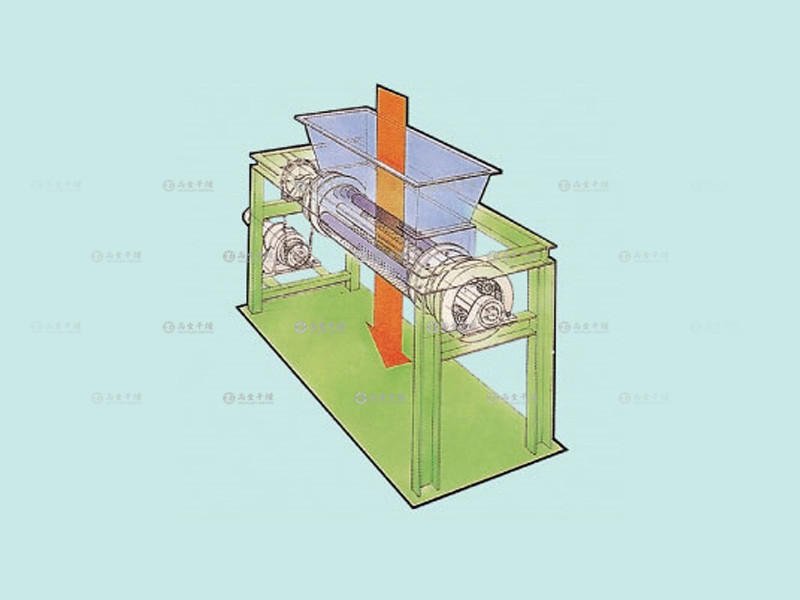 ◎水平擠出成型機(jī): 由加料斗、二根輥?zhàn)雍蚒形振動網(wǎng)構(gòu)成。以增大物料的表面積為目的,造粒物料與振動網(wǎng)接觸,由旋轉(zhuǎn)輥?zhàn)拥膹?qiáng)制壓力擠出網(wǎng)外,形成圓柱形的顆粒。