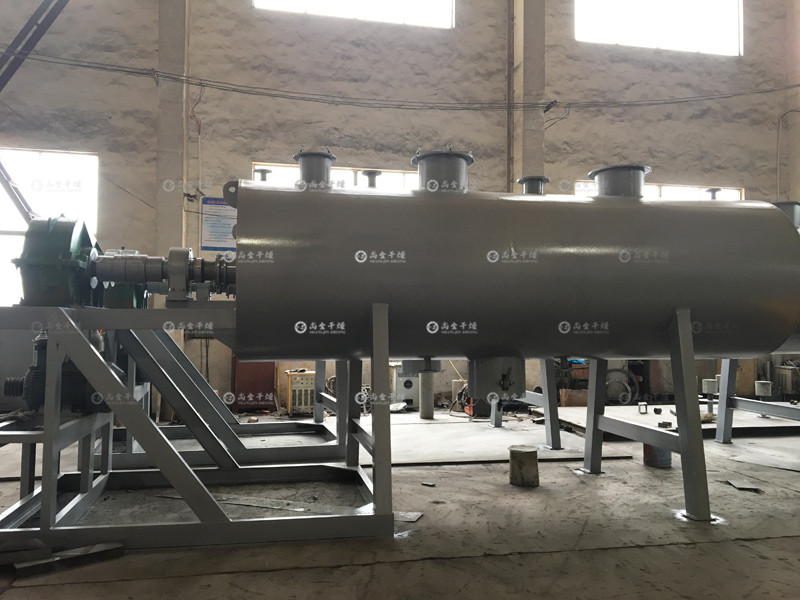 本機(jī)是一種新穎臥式間歇式真空干燥設(shè)備,濕物料經(jīng)傳導(dǎo)蒸發(fā),帶有刮板攪拌器不斷清除熱面上的物料,并在容器內(nèi)推移形成循環(huán)流,水份蒸發(fā)后由真空泵抽出。