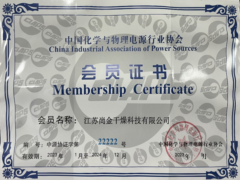 中國(guó)化學(xué)與物理電源行業(yè)協(xié)會(huì)會(huì)員證書