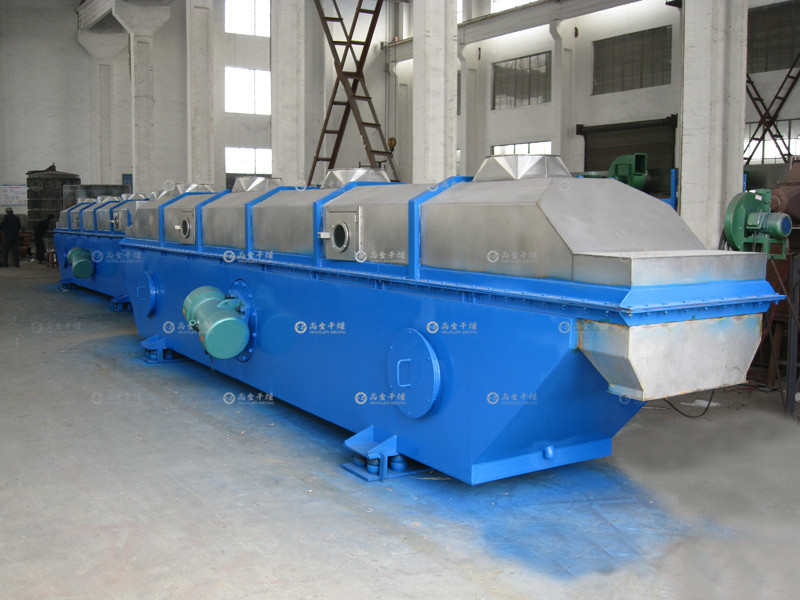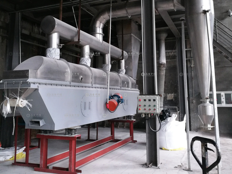 The material enters the machine from the feed inlet. Under the action of the vibration force, the material is thrown along the horizontal fluidized bed and moves forward continuously. After the hot air passes through the fluidized bed and exchanges heat with the wet material, the wet air is discharged by the exhaust 1:3 after the dust is removed by the cyclone separator, and the dry material is discharged by the exhaust inlet.