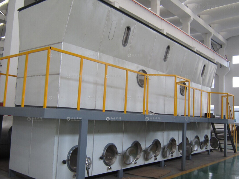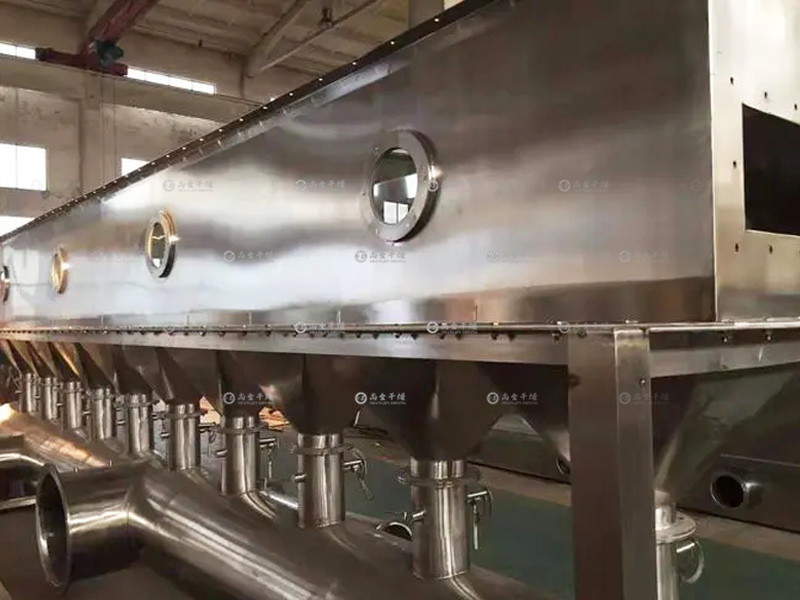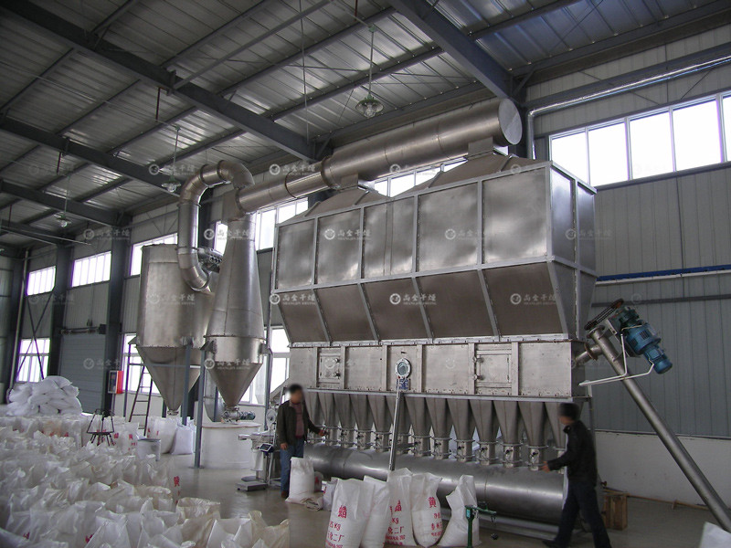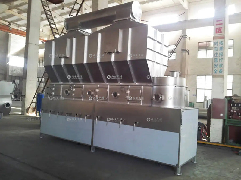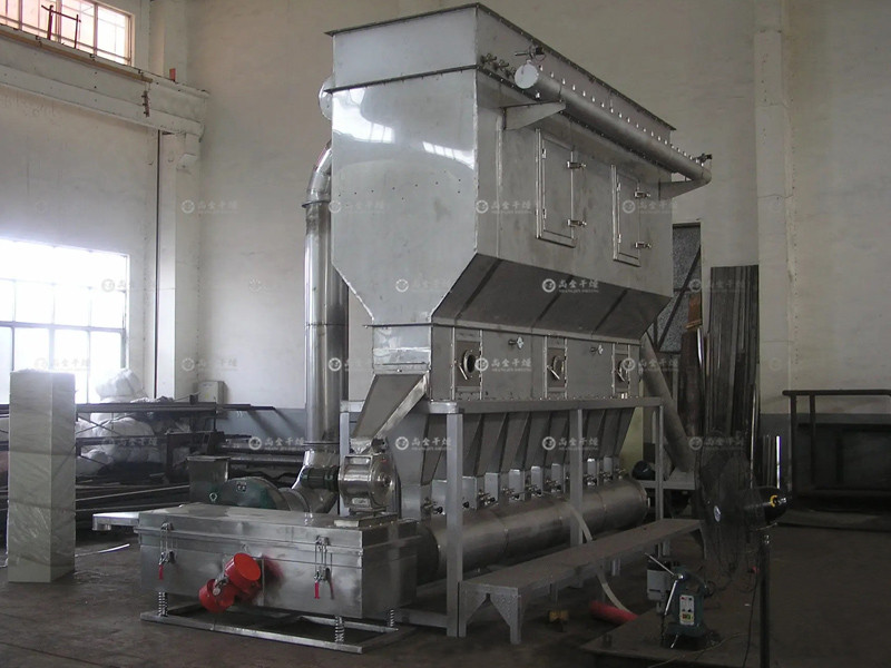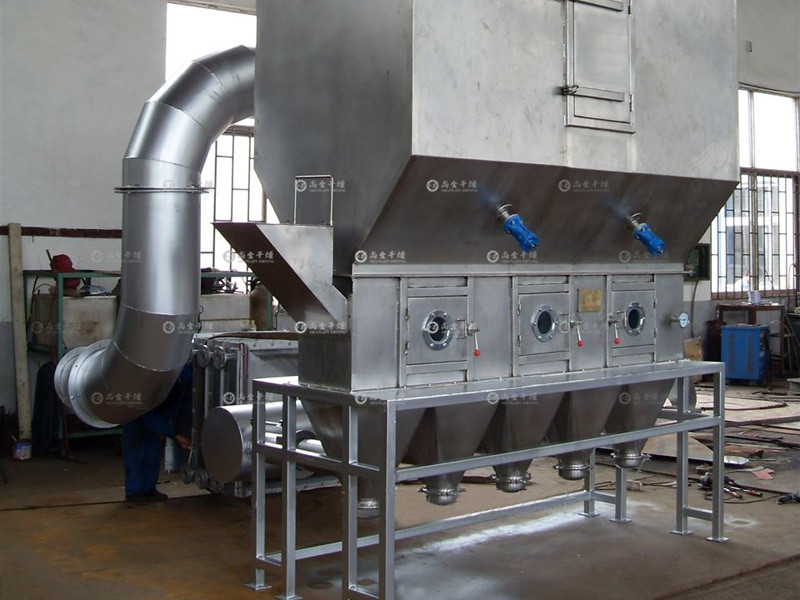 The clean hot air is distributed into the bed through the valve plate, and the wet material entering from the feeder is boiled by the hot air. Due to the extensive contact between hot air and materials, the heat and mass transfer process is enhanced, so it can be dried in a short time. If the continuous type is used, the material enters from one end of the bed, and flows out from the other end of the bed automatically after boiling and drying for tens of seconds to several minutes. This equipment is generally operated under negative pressure.