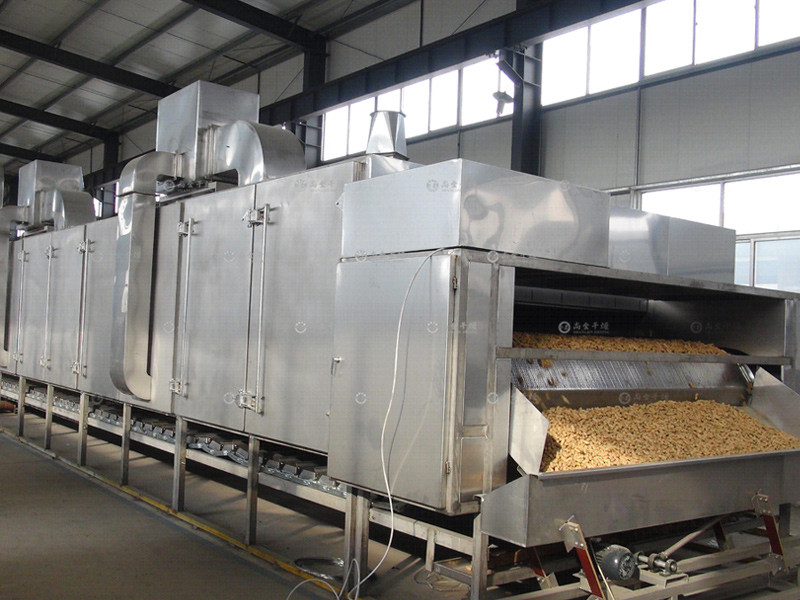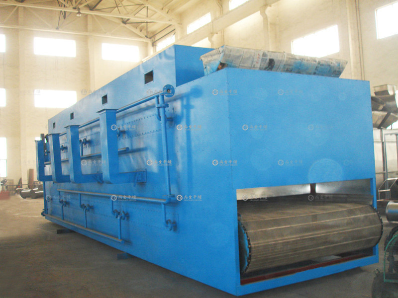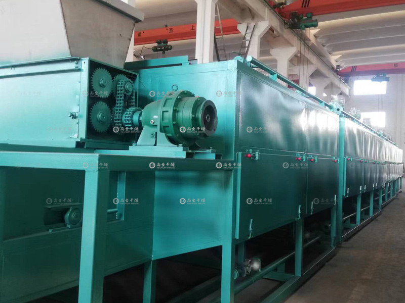 The material is evenly laid on the mesh belt by the feeder. The mesh belt generally uses 12-60 mesh stainless steel mesh, which is dragged by the drive device to move in the dryer. The dryer is composed of several units, each of which has an independent circulation of hot air. Part of the tail gas is discharged by a special moisture exhaust fan. The exhaust gas is controlled by a regulating valve. The hot air passes through the mesh belt covered with materials from bottom to top or from top to bottom to complete the process of heat and mass transfer and take away the moisture of materials. The mesh belt moves slowly, the running speed can be adjusted freely according to the material temperature, and the dried finished products fall into the feeder continuously. The upper and lower circulation units can be flexibly equipped according to user needs, and the number of units can also be selected according to needs.