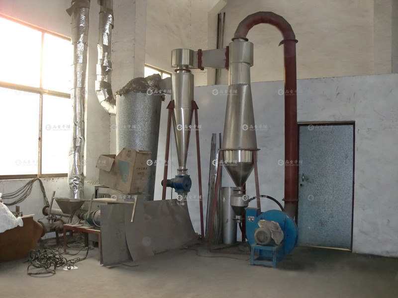 ??Air drying can quickly remove water (mainly surface water) from particles and powder materials that are easy to be dehydrated. In air flow drying, the quality of the dried product is controlled due to the short residence time of the material in the dryer. Our factory's enhanced air flow drying is composed of a set of intensifiers with stepless speed adjustment added to the basic type. The wet materials enter the intensifier through the spiral feeder and are fully mixed with the hot air flow. Under the impact and propulsion of the rapidly rotating knife, the materials are broken into fine particles, which move towards the outlet while drying, and finally enter the drying pipe under the wind force to further evenly dry. The wet and heavy particles that cannot be attracted by the wind continue to be broken and dried until they can be sucked up by the wind into the drying tube.