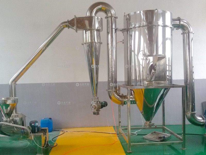This machine is composed of three parts: main machine, auxiliary machine and electric control box. It has a variety of performances such as air separation, no screen, uniform particle size, etc. The production process is continuous, and it is suitable for crushing brittle materials in pharmaceutical, chemical, food and other industries.